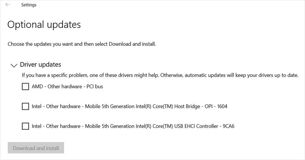 Quando a Microsoft retirou o suporte para as atualizações automáticas no Gestor de Dispositivos no mês passado, todos os drivers passaram para esta secção. Isto em vez de se ir para o gestor de dispositivos. O problema é que esta página também disponibiliza drivers indesejáveis. Assim, se não tivermos atenção, podemos acabar por descarregar o que não queremos. Mesmo se estivermos só à espera de resolver alguns problemas.