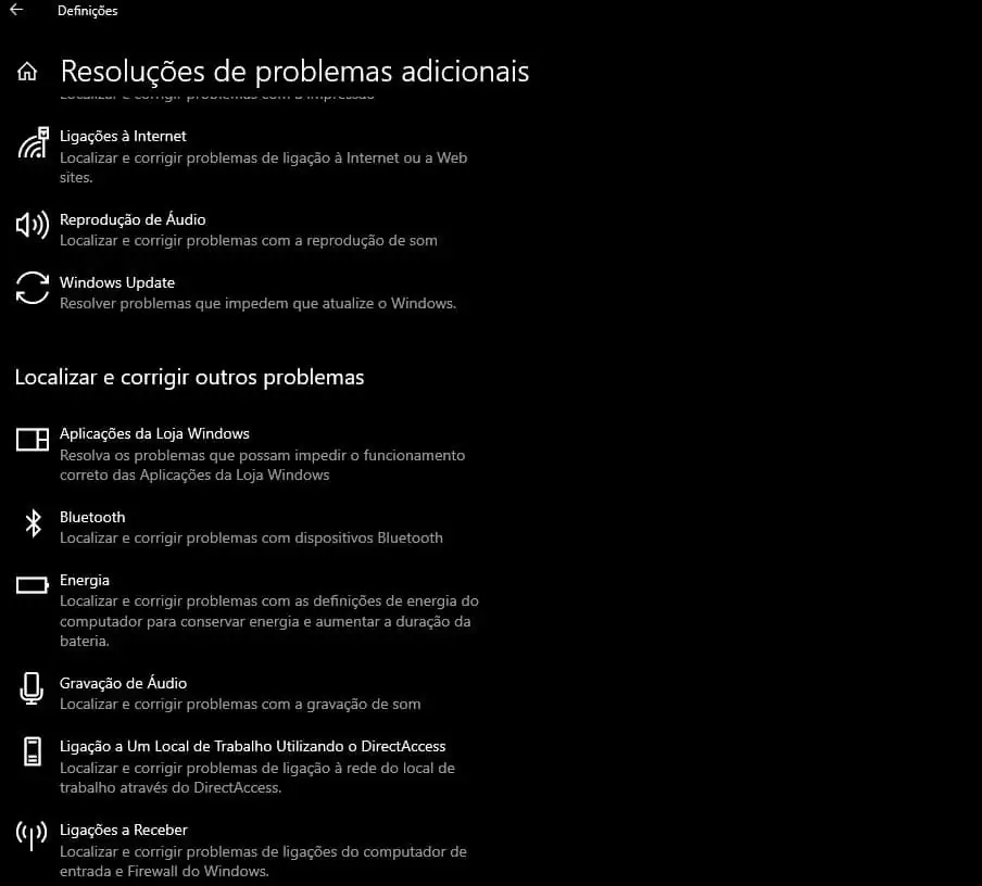 Utilizar o assistente de resolução de problemas do Windows 10