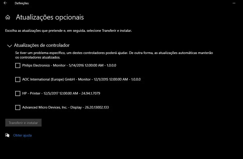Depois escolha a opção Ver atualizações opcionais.