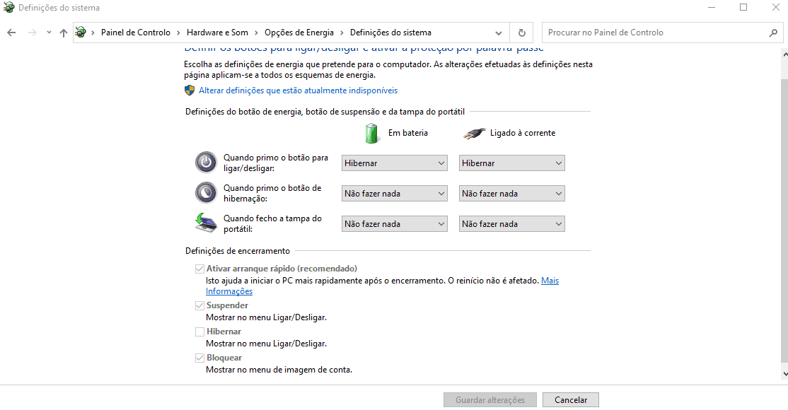 O nosso Windows por norma, trás um sistema de Arranque rápido, mas no caso de não estar ativo é fácil ativar. Basta ir a bateria, opções de energia e clicar em escolher o que faz o fecho da tampa. Entretanto depois é só verificar se está ativo.