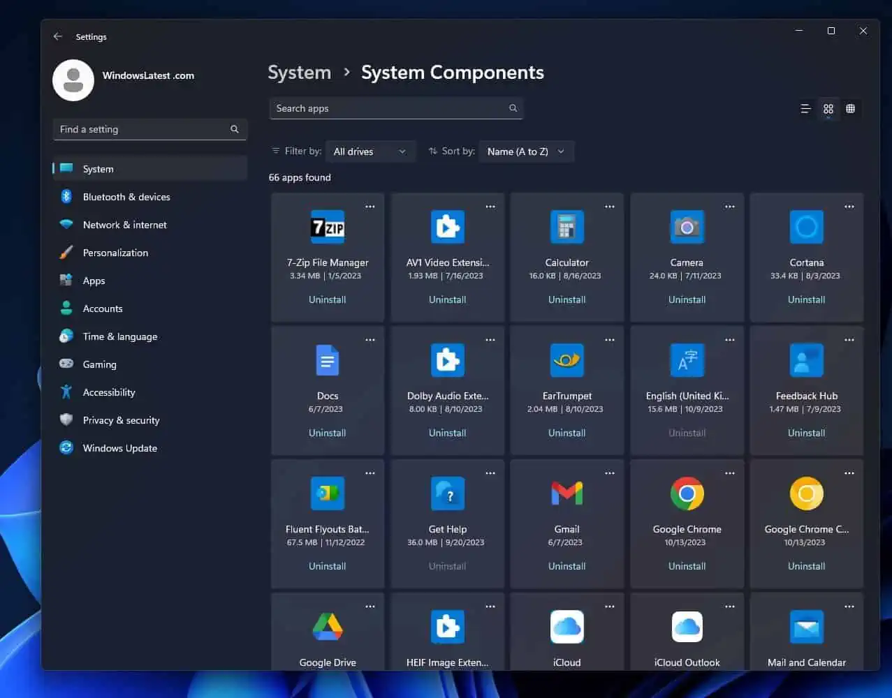 A Microsoft quer simplificar a gestão de aplicações no Windows 11 com um hub dedicado aos componentes do sistema. No entanto, se desejar, ainda pode visitar a página “Aplicações e recursos” e gerir todas as aplicações e componentes instalados. Ainda assim se estiver à procura especificamente de uma aplicação de sistema como a Calculadora, pode ir para a página Componentes do sistema.