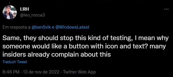 Mas no Twitter as reações também surgiram muito rapidamente. Isto porque este botão acaba por tirar algum espaço à barra de tarefas. Se virmos bem daria para acomodar dois ou três ícones.