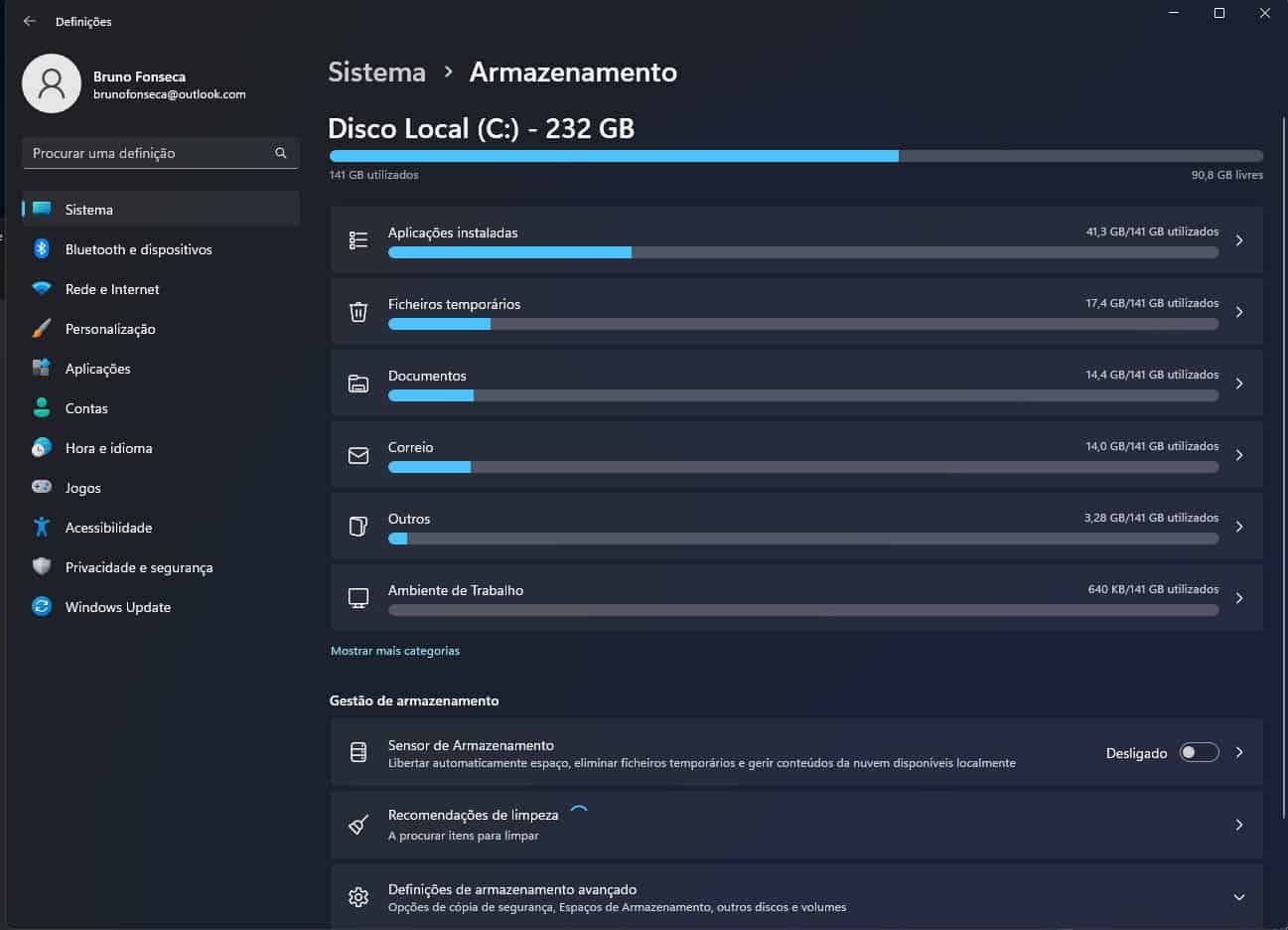 Aí vamos encontrar apps que não utilizamos mas também outras coisas que podem ser limpas.