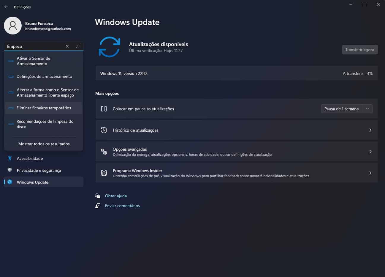 Agora e se tivermos alguma indicação de uma atualização disponível temos de dar um clique em Transferir e Instalar.