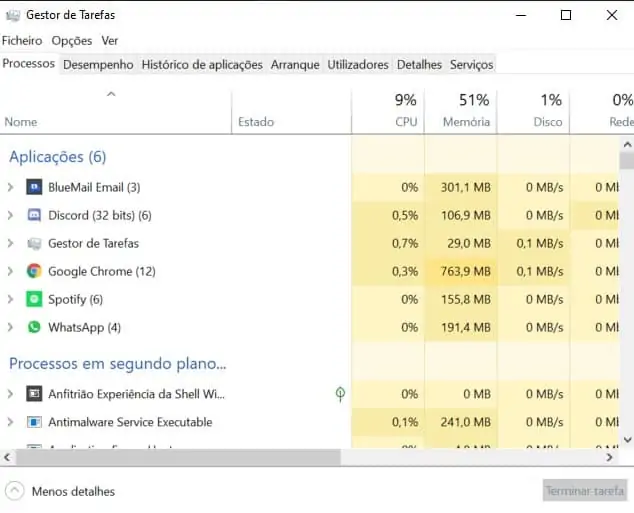- Vá à barra Iniciar e escreva ‘Gestor de Tarefas’ ou ‘Task Manager’. (Pode também utilizar o atalho (Ctrl + Shift + Esc).