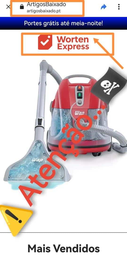 Domínio estranho: o URL não é o oficial (worten.pt). Se o domínio for “artigosbaixado.pt”, “wortenexpress.org” ou semelhante, desconfia.