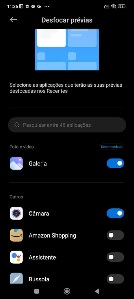 Assim que o tivermos feito é só escolhermos as apps que queremos desfocar na lista de pré-visualização.