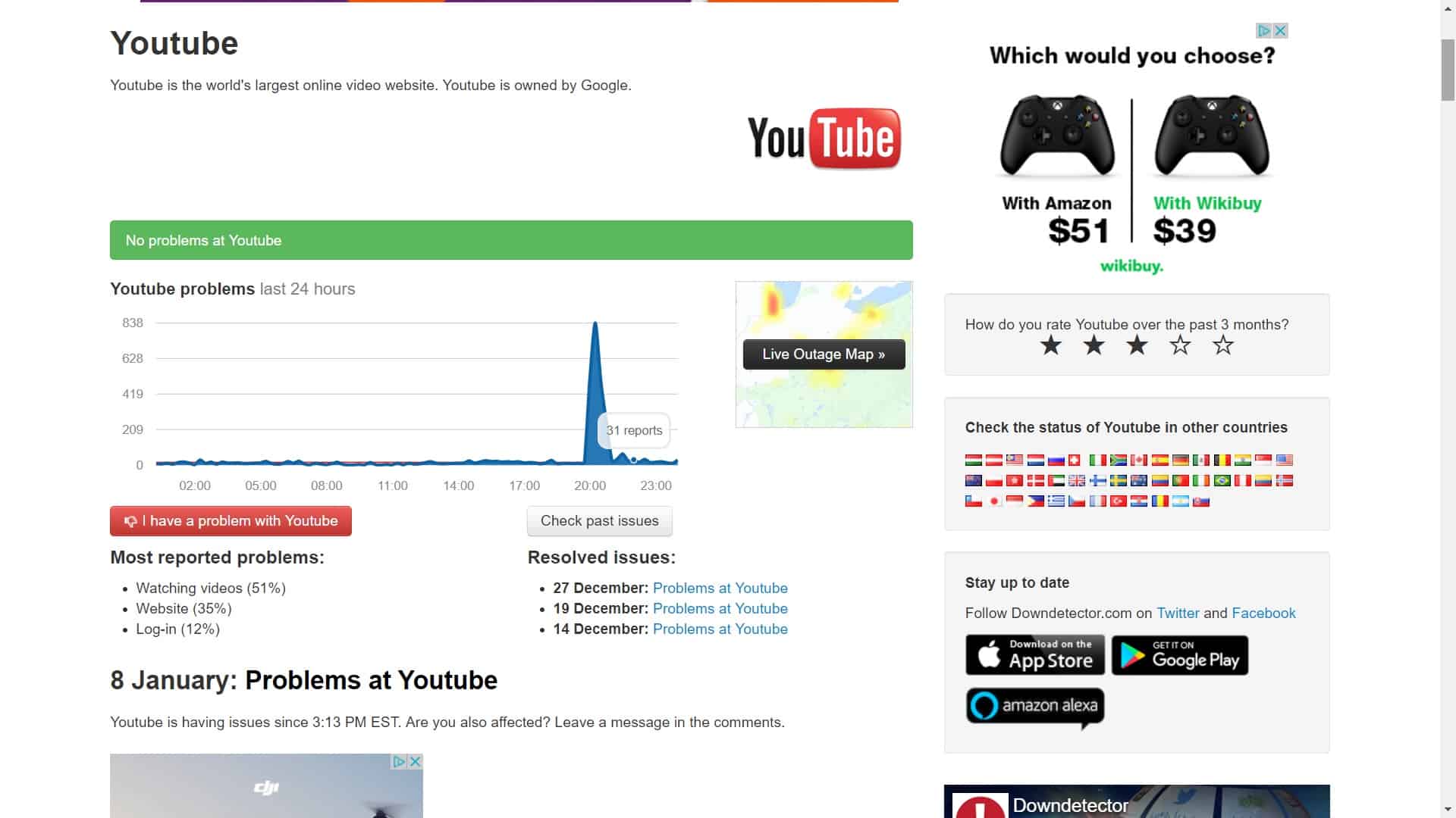 Vários utilizadores em vários países, já foram afetados, de forma alternada. Acrescentando que, existem imensas publicações a reportar, que o Youtube encontra-se com estes problemas desde as 3:13PM EST de hoje.