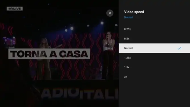 Os controlos de velocidade estão disponíveis no menu que surge quando se reproduz um vídeo. Isto entre o adicionar à lista de reprodução e os botões de polegares para cima. Pode escolher entre 0,25x, 0,5x, normal, 1.25x, 1.5x e 2x. Ao contrário dos smartphones, não há opções de 0,75x e 1,75x. Ainda assim é bom que esta função tenha chegado às nossas televisões. Entretanto o que escolhemos parece passar de um vídeo para o outro. Assim, para voltar tudo ao normal, temos de o fazer manualmente.