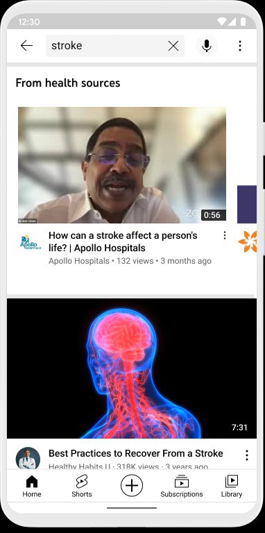 Mas esta não é a única novidade. Assim temos uma nova secção que aparece junto das questões relacionadas com a saúde. Por exemplo, se pesquisarmos qualquer condição de saúde irá aparecer uma nova secção que destaca os vídeos que são provenientes de fontes credíveis.